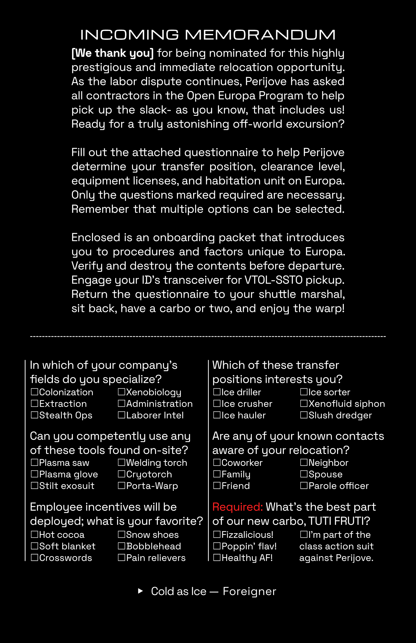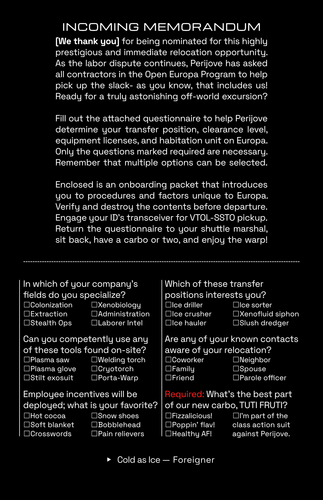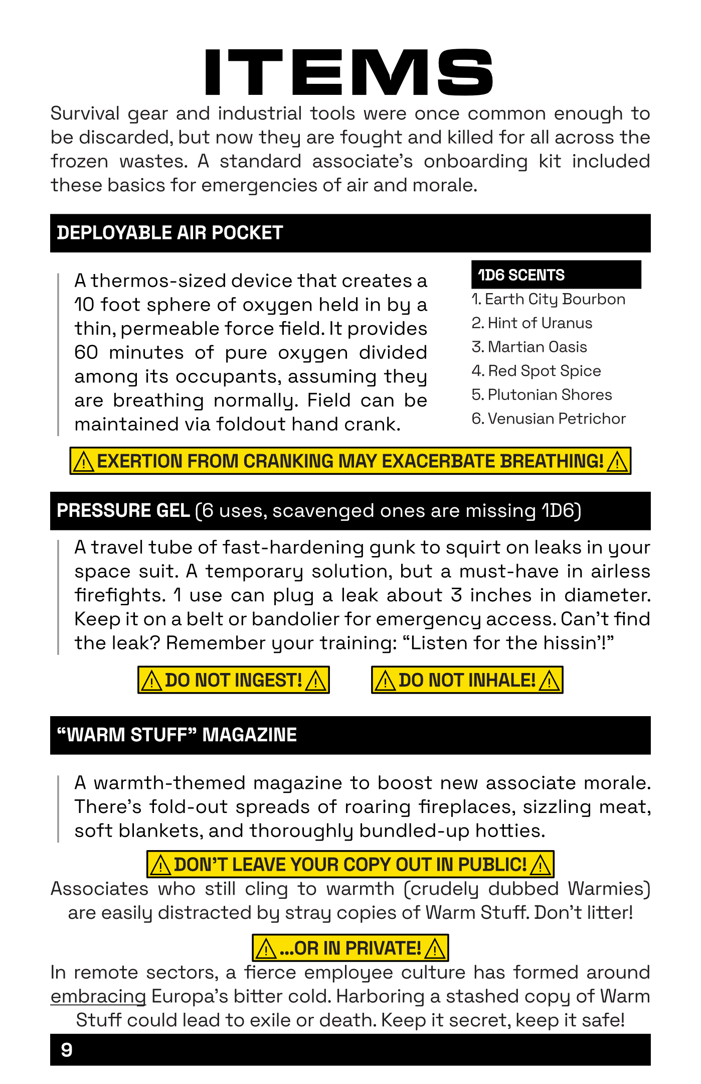 There's new rules, items, NPCs, space suits, some location prompts, and plenty of war to last forever.